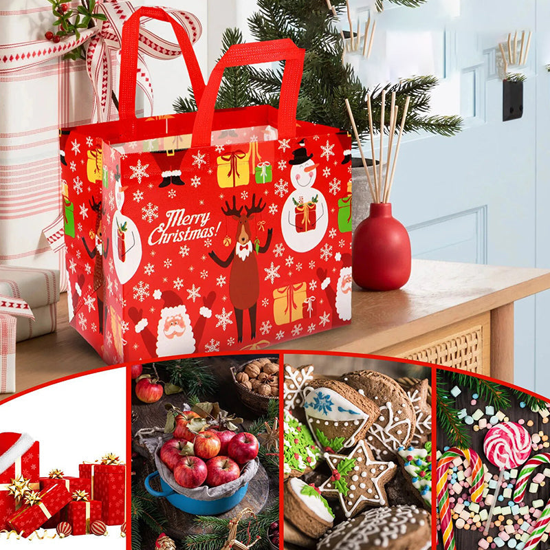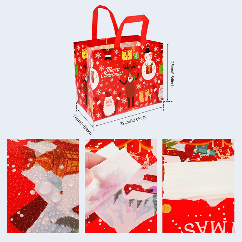 MATERIALES DE ALTA CALIDAD - Estas bolsas de regalo de Navidad están hechas de tela no tejida, que es duradera y reutilizable. El proceso de impresión es a máquina, lo que garantiza la precisión y claridad de los patrones.